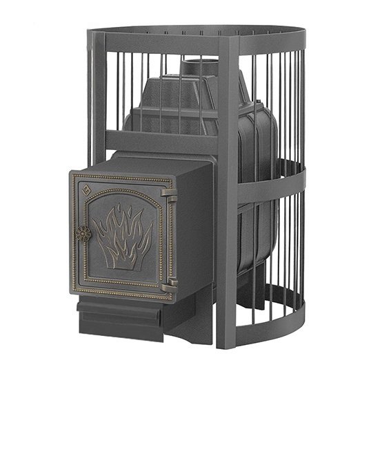 Банная чугунная печь Легенда Стандарт 28 (ДТ-4) укомплектована чугунной не герметичной дверцей Везувий ДТ-4.  Конвекционно-вентилируемый кожух "Стандарт" изготовлен из металлического прутка диаметром 6мм покрашенной черной термостойкой краской.