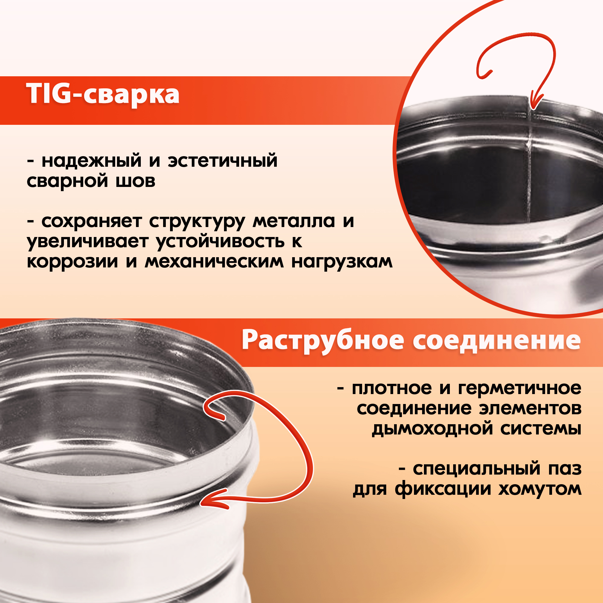 При изготовлении адаптера дымохода Моно используется сварка TIG – это сварка встык в среде аргона с применением аустенитной проволоки.
