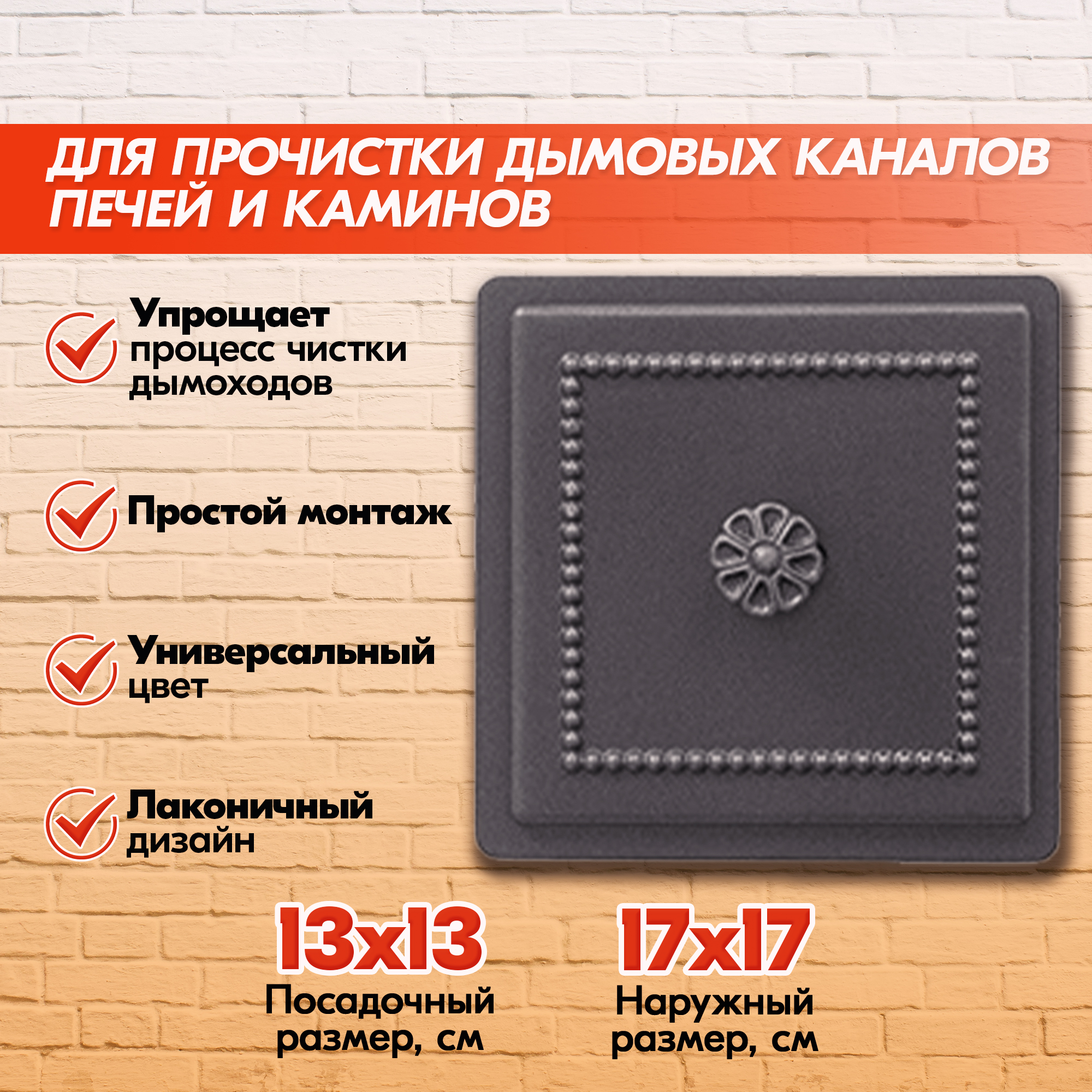 Прочистная дверца устанавливается в дымоходной системе и нужна для очистки дымохода от сажи и копоти.