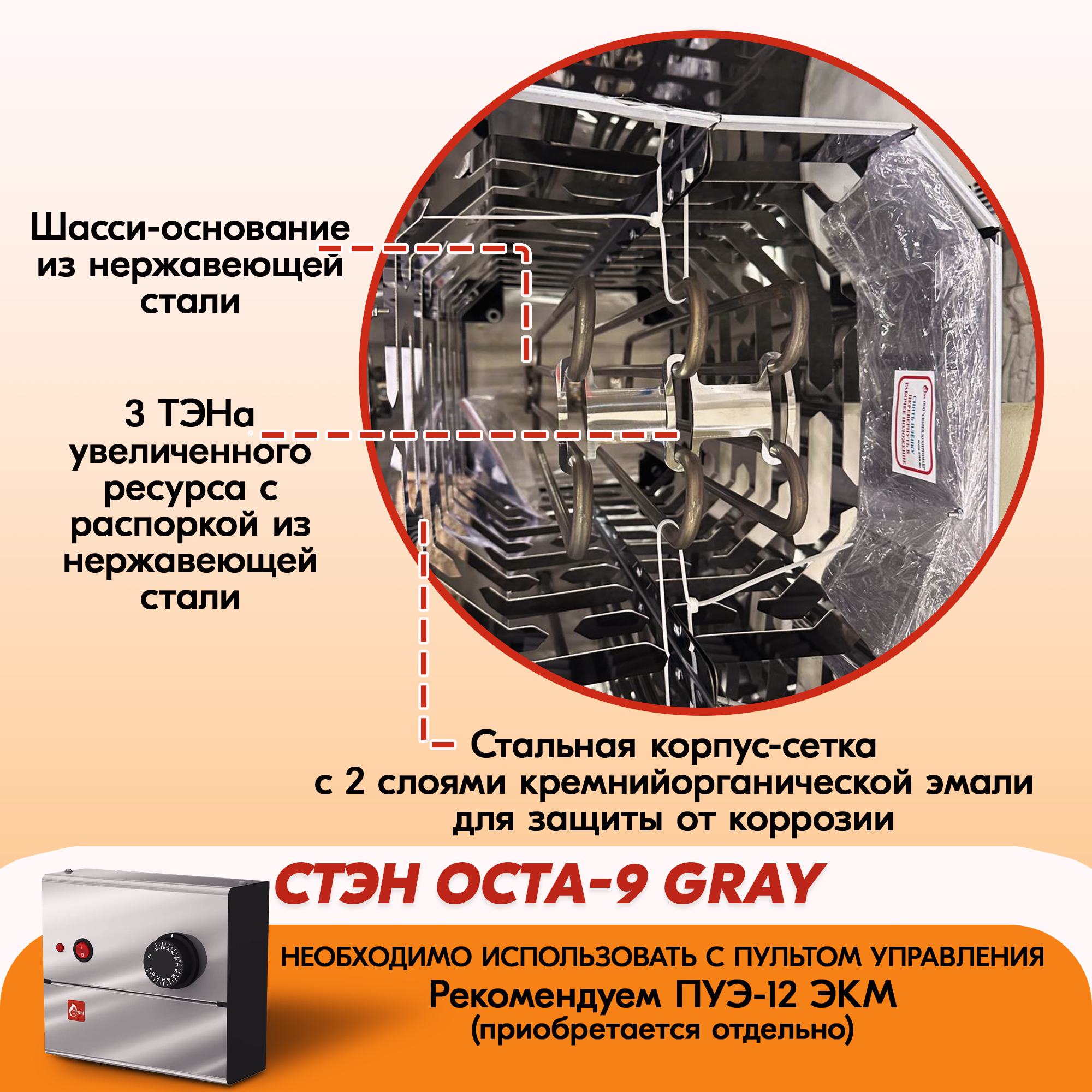 Электрическая каменка СТЭН ЭКМ 9 Octa gray в Чите | Доставка по России
