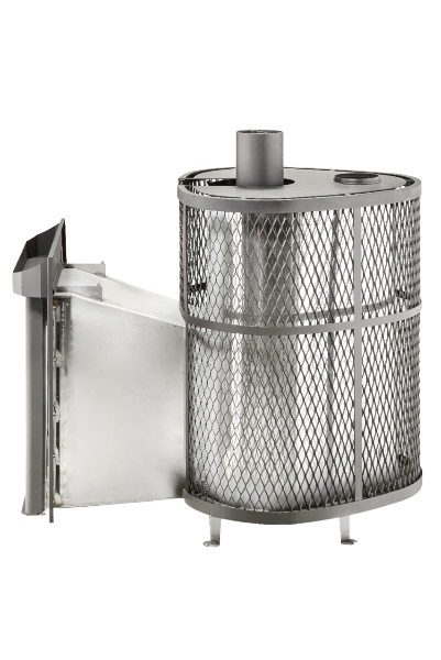 Печи VÖHRINGER с дровяной каменкой, у которой вся топка окружена большой массой камней, сильно разогревается, а дров уходит немного, благодаря полному сжиганию дымовых газов с помощью бокового и верхнего горения. Использование эффекта «Vortex», позволяет извлечь всю энергию и направить её на нагрев большого количества камней.