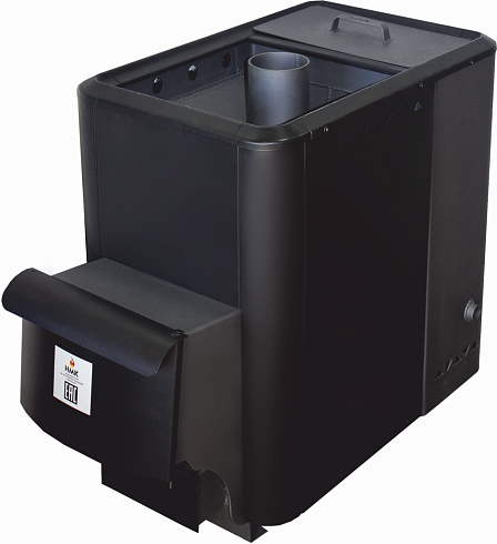 Компактная, надежная конструкция обеспечивает отличный пар в бане площадью до 20 метров. Открытая каменка вмешает 50-60 кг камней. Топится углем или дровами. Встроеннный бак обеспечивает необходимое для купания количество горячей воды.