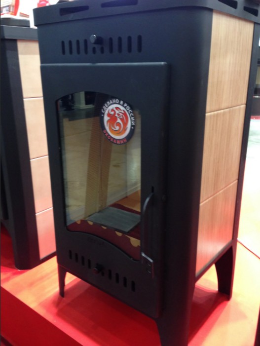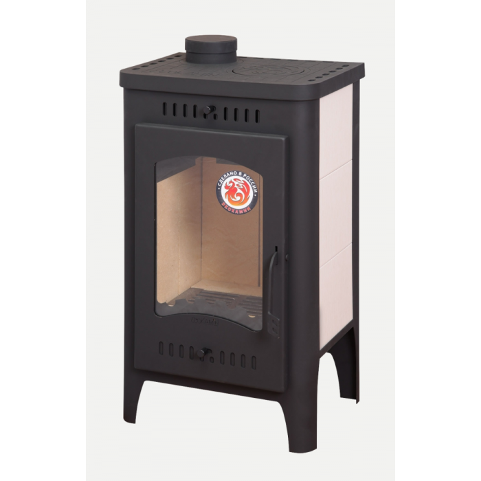 Через стекло в дверце печи-камина удобно присматривать за огнем, да и просто любоваться затейливыми играми пламени. Огнеупорное стекло, а точнее, стеклокерамика легко выдерживает температуру до 750°C. Несмотря на то, что материал прочнее обычного оконного стекла, рекомендуется соблюдать с ним такую же осторожность, особенно при транспортировке и установке - стекло может треснуть или разбиться. В этой печи использовано прямое остекление.