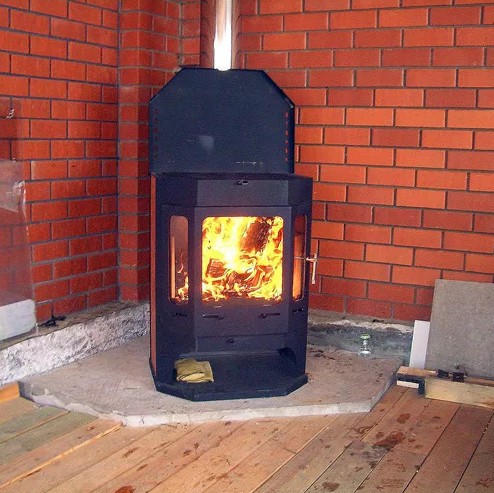 Обогрев этой печи часто называют "пушечным" за скорость нагрева. Через 15 минут после растопки вы ощущаете приятное тепло, которое разливается по дому. КПД у печи высокий - 80%.