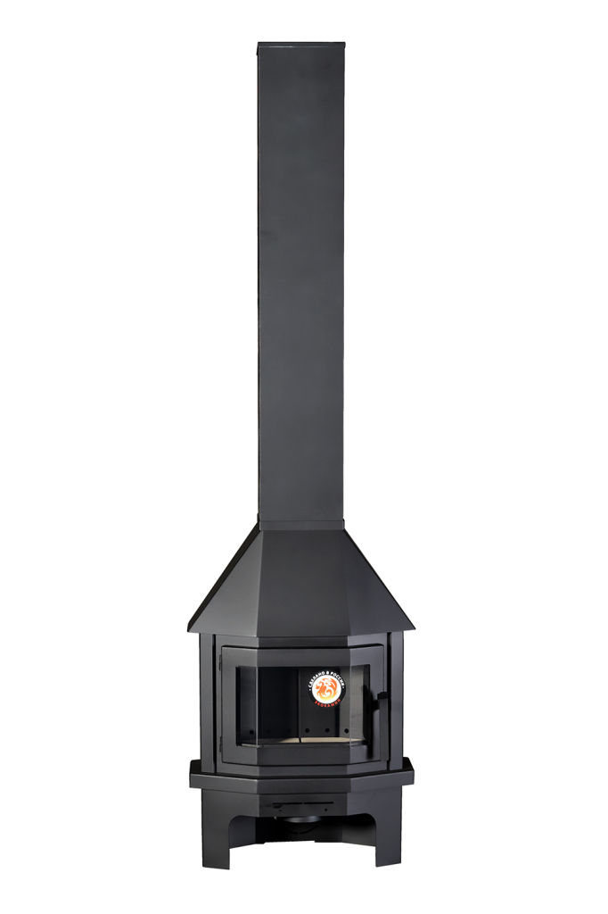 Печь-камин Мюнхен - недорогой готовый вариант углового камина из металла в стиле хай-тек.