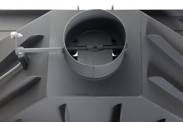 Дымосборник высокий и имеет форму конуса. Дымовые газы поднимаются вверх без завихрений и скапливаются в верхней части дымосборника. Когда вы открываете дверцу топки, чтобы подкинуть дров, то в помещение попадает на 80% меньше дыма. Топка с высоким дымосборником имеет чуть меньший КПД, но она удобнее в эксплуатации.