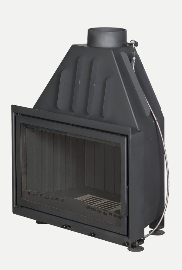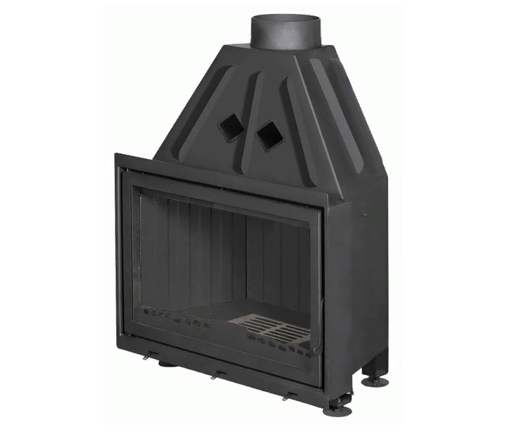Дымосборник высокий и имеет форму конуса. Дымовые газы поднимаются вверх без завихрений и скапливаются в верхней части дымосборника. Когда вы открываете дверцу топки, чтобы подкинуть дров, то в помещение попадает на 80% меньше дыма. Топка с высоким дымосборником имеет чуть меньший КПД, но она удобнее в эксплуатации.