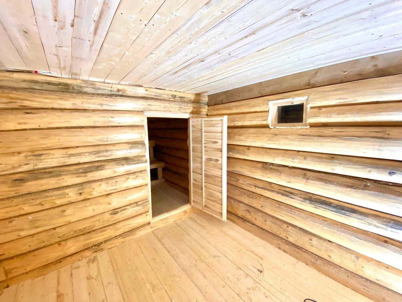 В комплект бани входит: фундамент ленточный мелкозаглубленный; сруб и его сборка; монтаж лаг; монтаж стропил; монтаж обрешетки; монтаж пола; монтаж потолка; монтаж фронтонов; кровля (профлист оцинкованный); полки; окно; дверь; керамзит; джут.