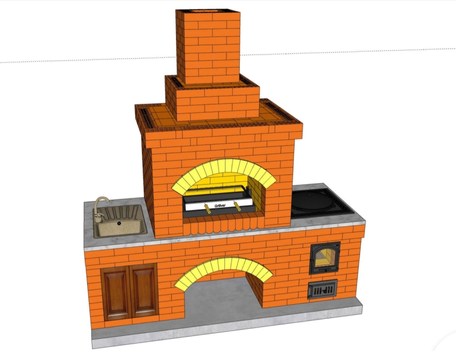 Барбекю из кирпича с плитой для казана